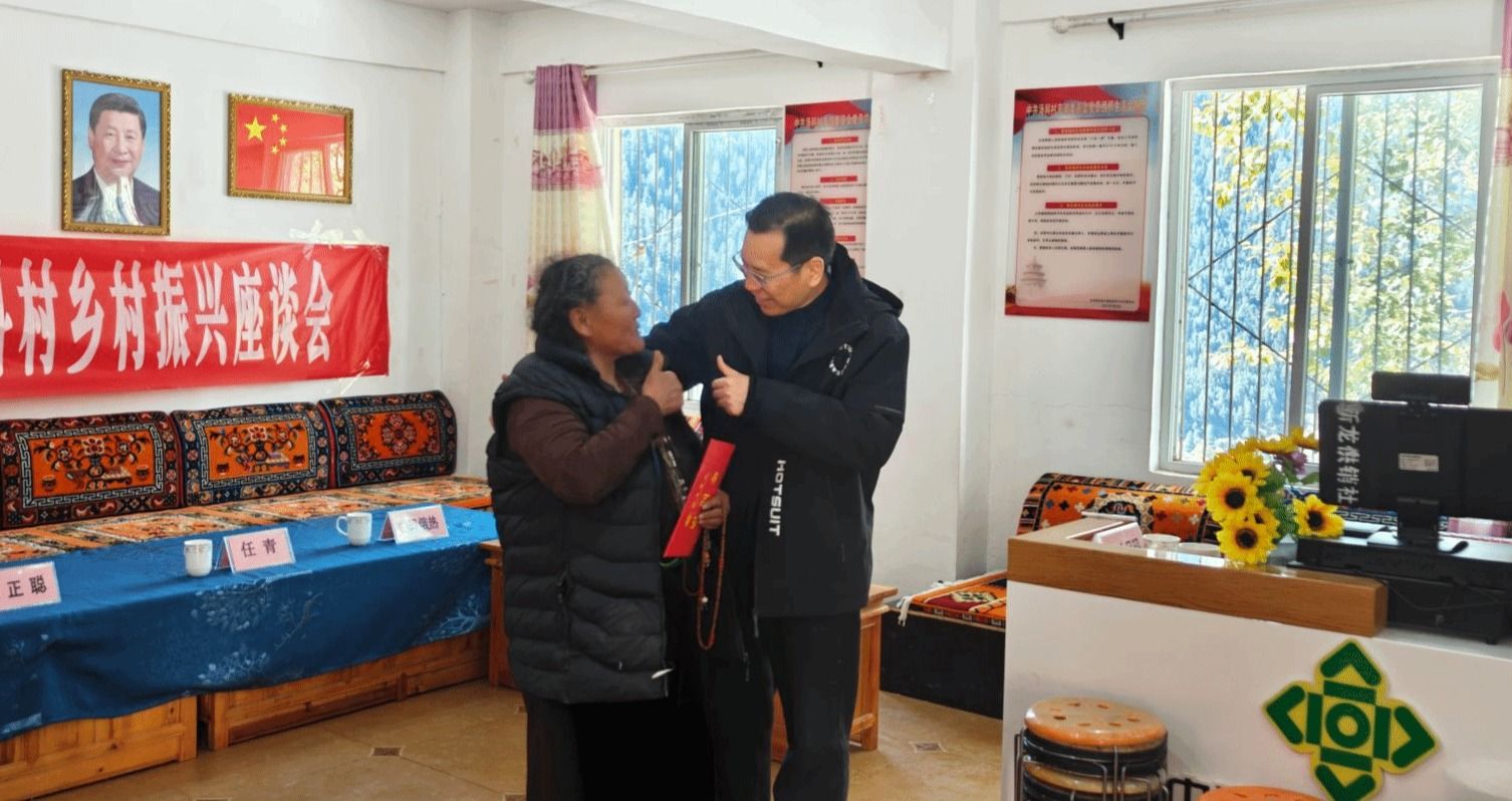 22日下午,杜正聰一行來到新龍縣大蓋鎮湯科村,召開鄉村振興座談會。杜正聰指出,在多方的共同努力下,新龍縣鄉村振興工作取得了顯著成效,老百姓們的日子越來越紅火、生活越有滋有味。他表示,學校高度重視幫扶工作,將始終貫徹中央省委關于鄉村振興工作的重要指示與工作部署,圍繞教育培訓、產業發展、隊伍建設、生態保護等內容持續深入推進對新龍縣的幫扶工作,助力新龍縣朝著高質量現代化發展,以優異成績、嶄新姿態邁向“第十五個五年規劃期”。
