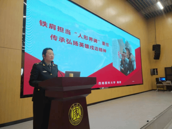 本次巡回授課教學展示活動以交流研討和專題授課的形式展開。在宜賓學院退役軍人服務站,高君與學校武裝部人員、軍事理論教員和20多名學生就軍事理論教育和軍事技能訓練進行了全方位的溝通和交流。隨后,她以“鐵肩擔當‘人形界碑’重任 傳承弘揚英雄戍邊精神”為主題,以中印爭端為案例,緊扣“愿得此生長報國”的擔當情懷、“身披嚴寒而愈麗”的奉獻情懷和“越是艱難越向前”的斗爭情懷,從界碑與人形界碑的關系凝練出戍邊精神的偉大,激勵當代大學生要自覺筑起心中的界碑,不斷發揚斗爭精神,增強斗爭本領,在全面建設社會主義現代化強國的新征程上砥礪前行。