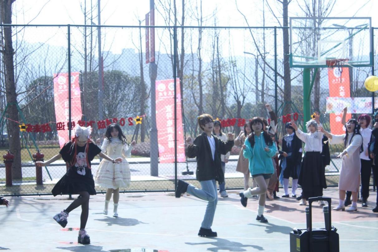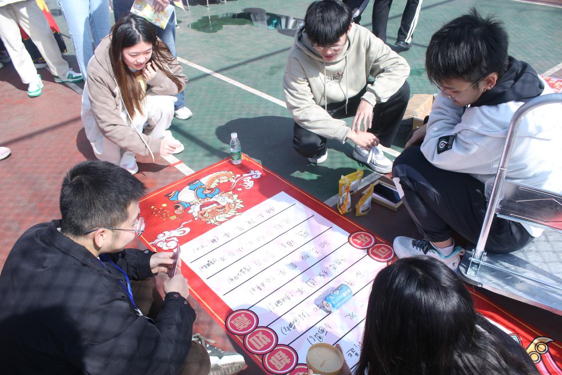 春光明媚,一場充滿青春活力的游園會在籃球場熱烈進行。工作人員設置各式攤位,同學們手持集章卡,參與攤位游戲集印章,集滿印章憑卡兌換禮品。游戲形式多樣,內容豐富。滾滾樂,參與者在指定位置滾動飲料罐,按照飲料罐停留的中獎位置可以兌換相應獎品;夾彈珠,參賽者分小組,用筷子夾彈珠,將其放到指定位置,每個小組的每位成員各有40秒時間,規定時間內彈珠總數最多的小組獲勝;投壺,2人各持10個投擲物品,將容器放遠處,2人分別進行投擲,進入容器的投擲物品多的一人獲勝……此外還有你畫我猜、表情包卡牌、彈彈棋、踩雷磁力感應棋等豐富多彩的游戲吸引著大量同學參與,部分同學身著漢服、cos服穿梭在游園活動中,同學們一起載歌載舞為現場增添了別樣的風采。