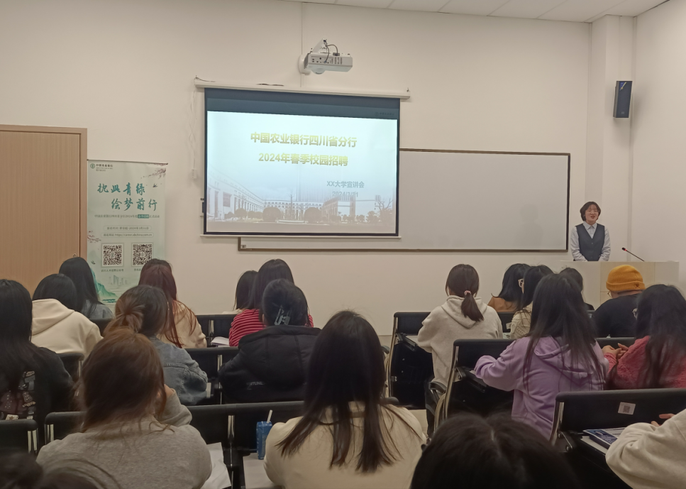 為進一步拓寬畢業生就業渠道,搭建學生與企業的交流合作平臺,增強對畢業生的就業指導和精準幫扶,3月21日,經管學部在臨港校區就業創業育人綜合體206宣講室舉辦了中國農業銀行四川省分行專場招聘會。