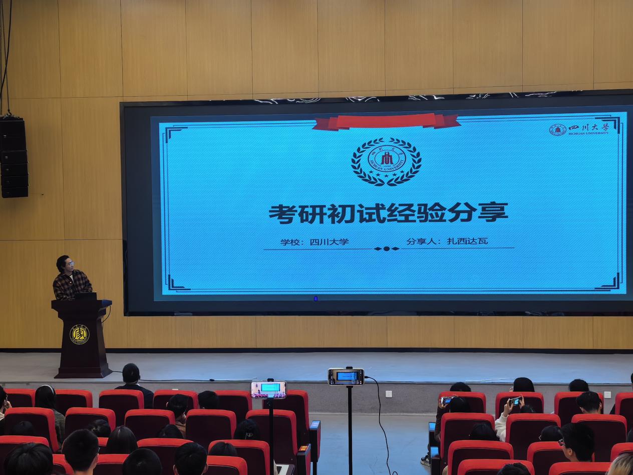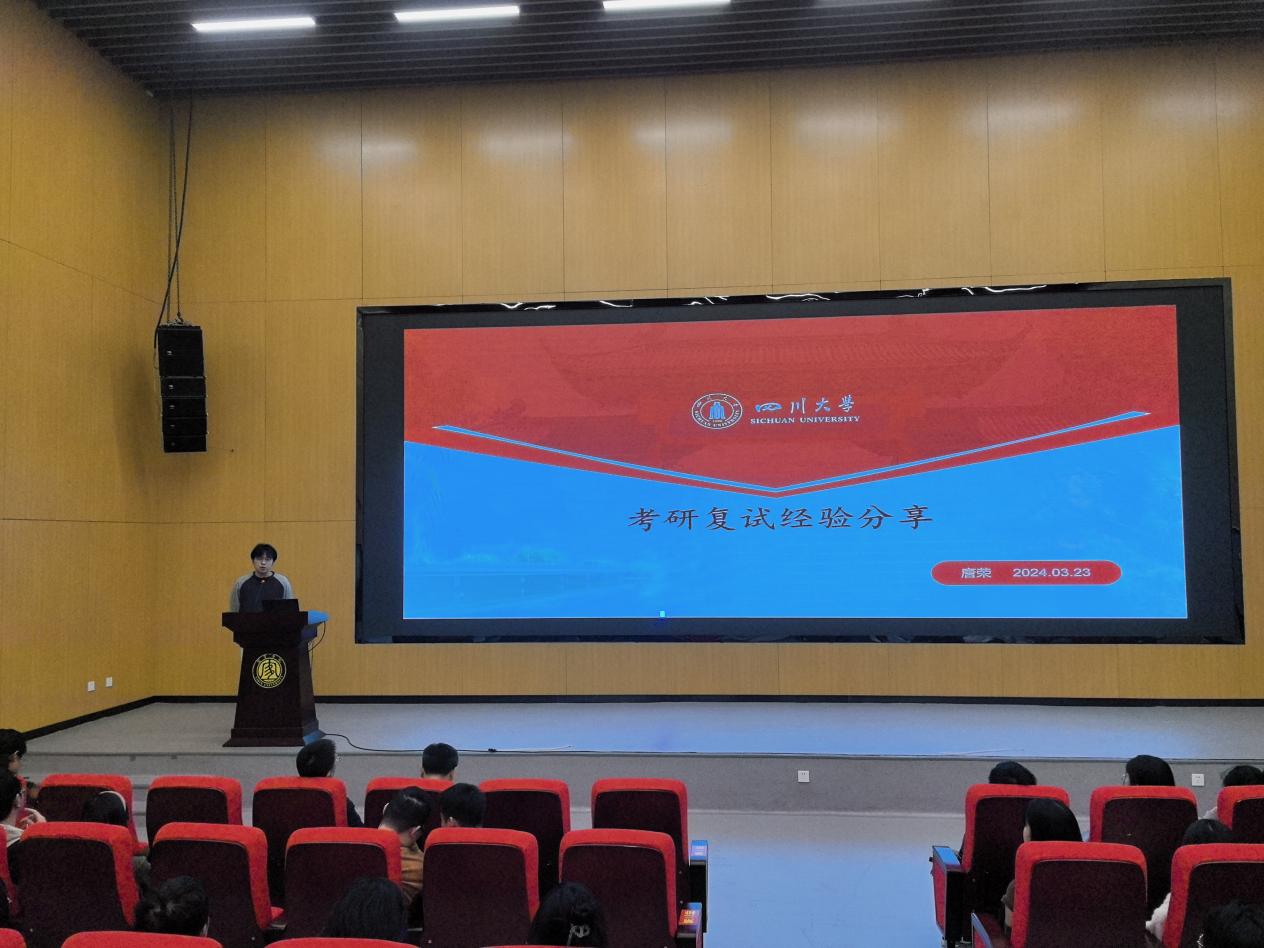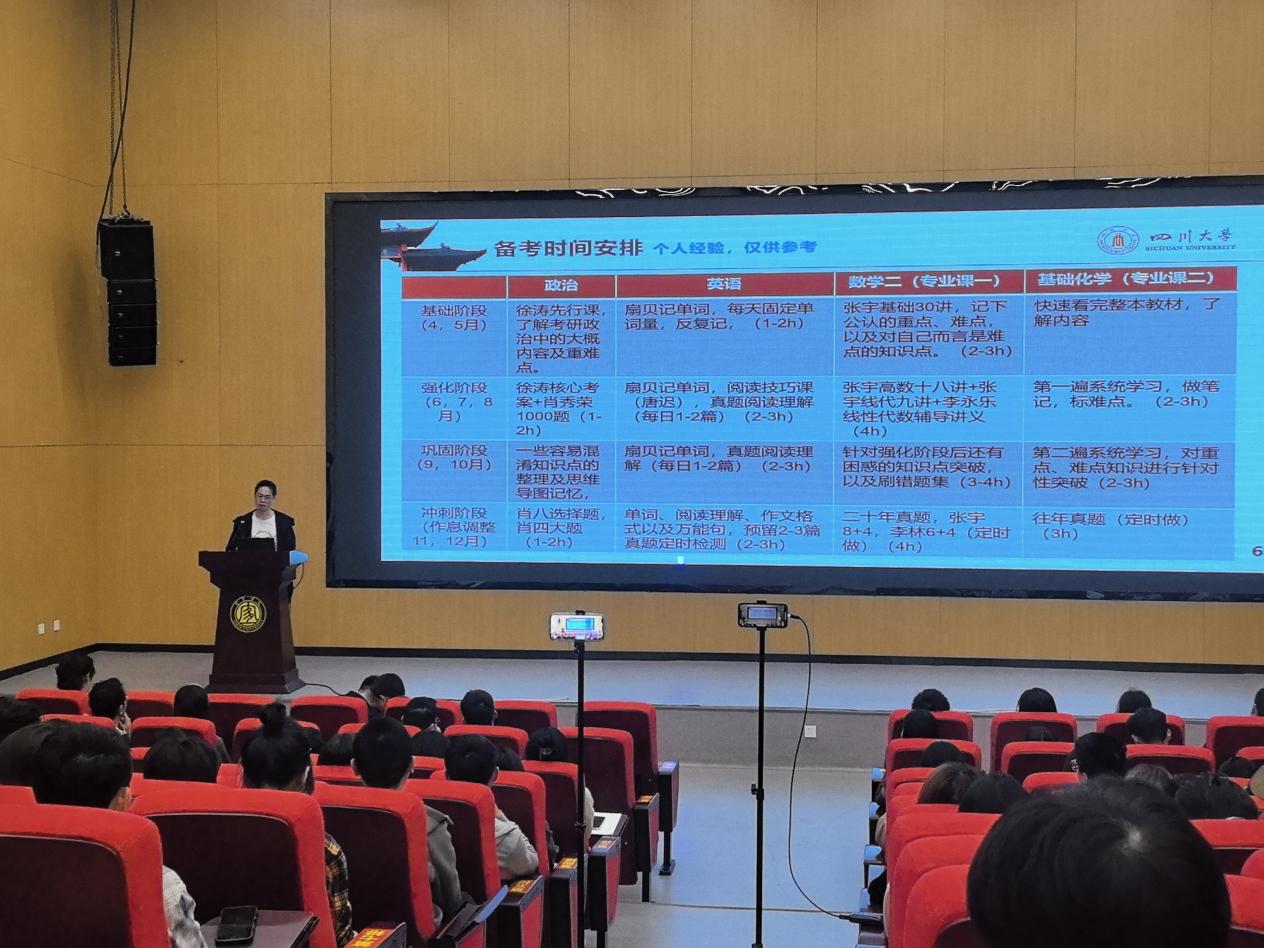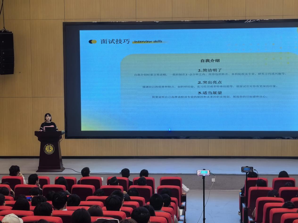 四位同學逐一上臺,為同學們提供科學、有效的考研初試備考及復試技巧輔導,幫助同學們梳理考研備考和復試的基本流程、掌握最新的考研動態、調整備考狀態,進而堅定信心,以積極向上的精神面貌從容應對研考。