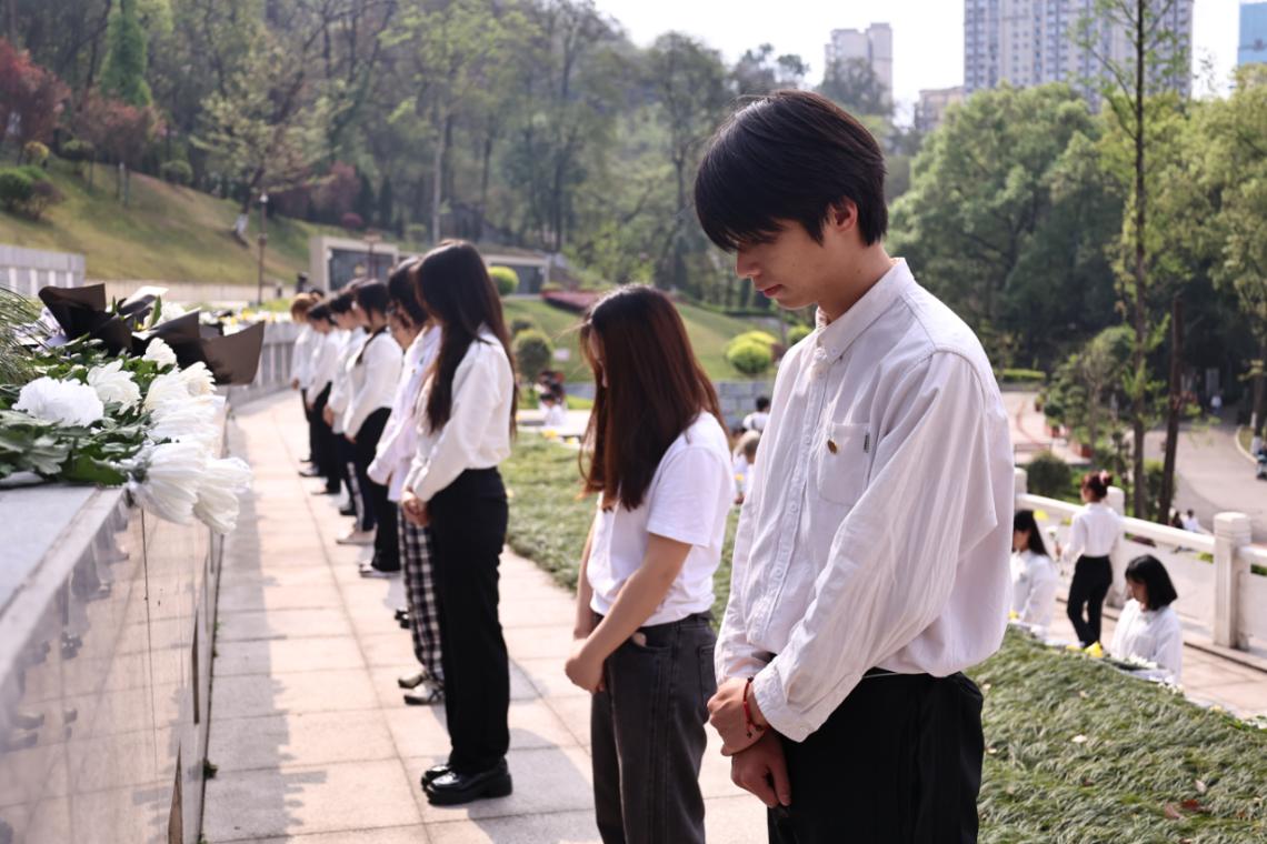 全體同學統一著裝,手持鮮花,在烈士紀念碑前列隊向革命烈士默哀三分鐘并鞠躬致敬。在引導員的帶領下,學生代表上前敬獻花圈,同學們隨后依次獻花,表達對先烈們的哀思。紀念碑下,全體同學重溫入團誓詞并莊嚴承諾將繼承和發揚革命先烈的遺志,為中華民族偉大復興而奮勇拼搏。同學們紛紛拿起勞動工具,打掃墓園衛生,清理先烈墓碑前的雜草和垃圾,用實際行動來表達對先烈的崇敬之情。