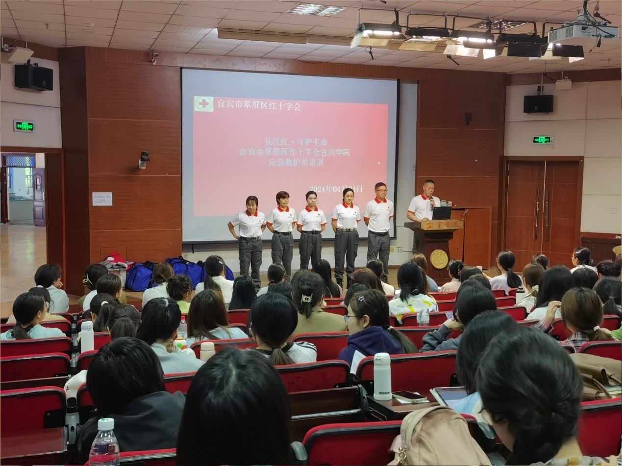 為充分發揮全國學校急救教育試點學校引領作用, 全面推進學校急救教育工作, 提高學生在突發意外事件中的自救與互救能力,近日,我校聯合翠屏區紅十字會在上江北校區三教A101,舉行2024年第一期紅十字救護員培訓。