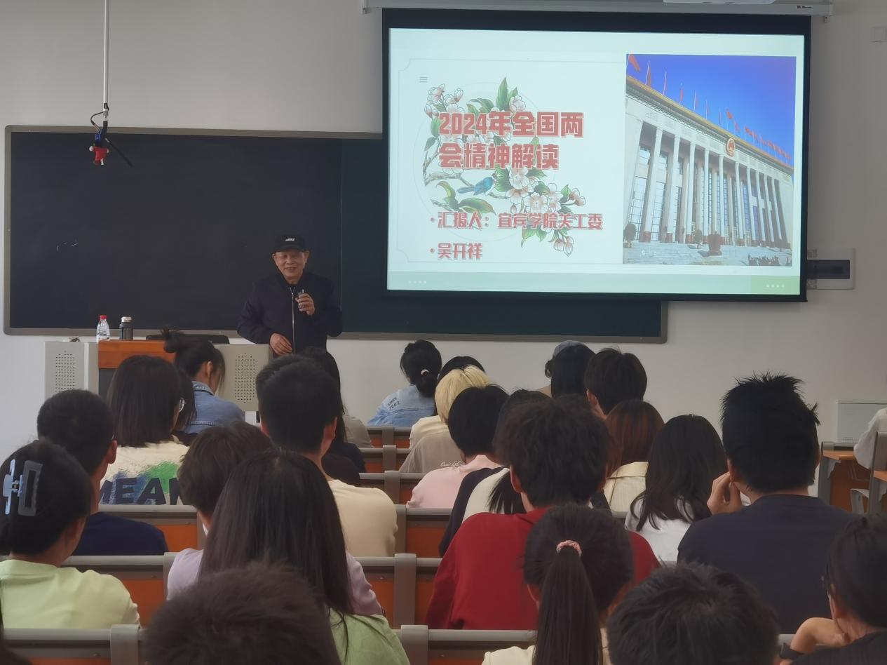 為了深入學習領會全國兩會精神,近日,宜賓學院關工委到理學部、農林與食品工程學部、國際應用技術學部、質量管理與檢驗檢測學部開展“2024年全國兩會精神解讀”主題講座。宜賓學院關工委吳開祥教授、鄭家華、肖希教授,理學部團總支副書記兼學辦副主任馬翠,質檢學部團總支副書記兼學辦副主任羅祥敏、專職輔導員黃小纖及四個學部學生代表參加講座。講座由吳開祥主講。