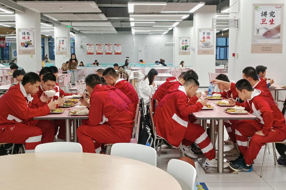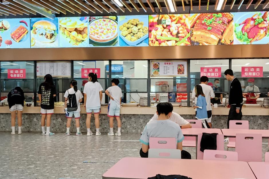 本次交流賽共有近500名師生參賽,為了讓師生們吃到既有營養又美味的飯菜,飲食管理中心認真制定保障方案、落實工作人員安排,提前做好餐飲準備工作。針對比賽期間就餐人數多、時間集中等情況,特開設運動員專用窗口、開通微信便捷支付,并且針對性地進行科學配餐、營養膳食、有序供餐,保證師生用餐安全放心。