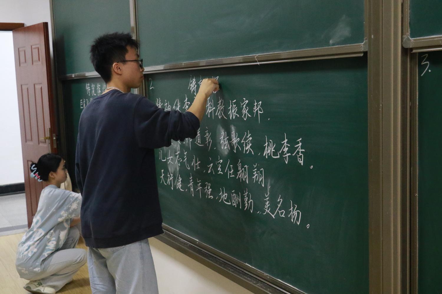 比賽分粉筆組、硬筆組、軟筆組三個(gè)組別同時(shí)進(jìn)行,書寫內(nèi)容由選手從校歌《鑄就輝煌》中選取并進(jìn)行排版設(shè)計(jì)。比賽現(xiàn)場(chǎng),參賽選手們?nèi)褙炞ⅲ娂娬宫F(xiàn)出扎實(shí)的書寫功底和獨(dú)特的藝術(shù)風(fēng)格。粉筆組的選手們揮灑自如,筆走龍蛇,將漢字書寫得既規(guī)范又生動(dòng);硬筆組的選手們則追求細(xì)節(jié),每一筆都精準(zhǔn)到位,展現(xiàn)了漢字書寫的嚴(yán)謹(jǐn)與精準(zhǔn);軟筆組的選手們則運(yùn)筆如飛,將毛筆字的韻味和魅力展現(xiàn)得淋漓盡致。