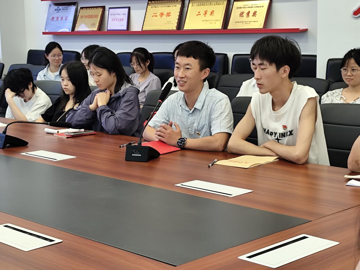 隨后,畢業生黨員代表們紛紛發言,分享自己的成長經歷和感悟。吳正雄同學結合自己的就業經歷,談到了如何在大學期間提升自己的綜合素質和就業競爭力;徐洋同學則分享了考研的經驗和心得,鼓勵低年級同學們要堅定信念、勤奮學習;唐杰同學深情地回顧了自己在大學期間的入伍經歷,表達了對學校和老師們的感激之情,并表示將永遠銘記這份寶貴的經歷。