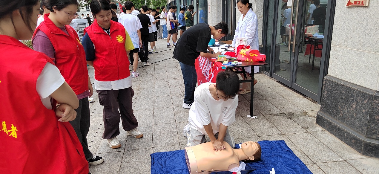校醫院醫護人員在活動現場為同學們演示心肺復蘇、包扎、止血、骨折固定、海姆立克等急救專業知識,對救護操作要領進行了現場示范,指導實操演練,讓同學們掌握一定的應急救護基本技能。