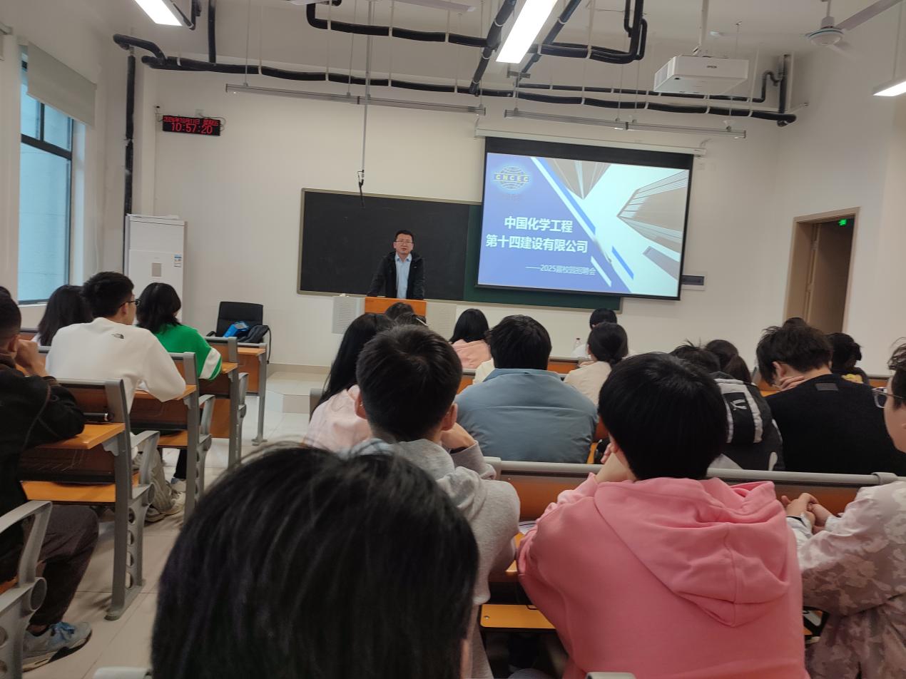 會上,公司相關負責人介紹了中國化學工程第十四建設有限公司的發展歷程、公司基本情況、發展成就以及未來中長期用人需求;針對安全工程專業詳細介紹了薪酬體系、福利待遇、工作環境、晉升渠道、職業發展、日常生活等方面的具體情況。在互動環節針對工作環境、薪資等問題為同學們一一詳盡解答。