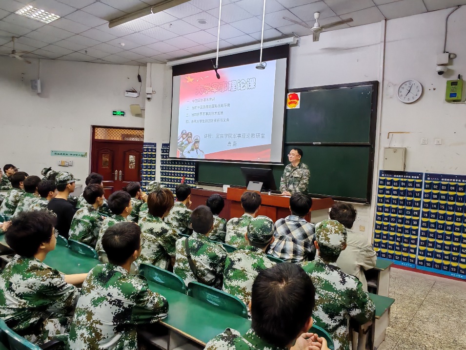 學校法管學院唐蔚老師主動兼任國防教育理論宣講員,從中國國防基本常識、當前中國面臨的國際戰略環境、當前世界軍事高技術發展和當代大學生的國防責任與義務四個方面對我校全體大一新生上了一堂別開生面的軍事理論課。