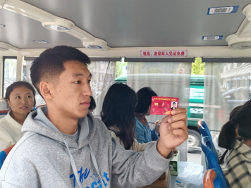退役大學生楊蛟作為第一個享受此政策的乘客,他激動地說到:“這不是一塊錢的事,這是我作為軍人的榮耀,也真正感受到了學院對退役軍人的關心和關愛”。