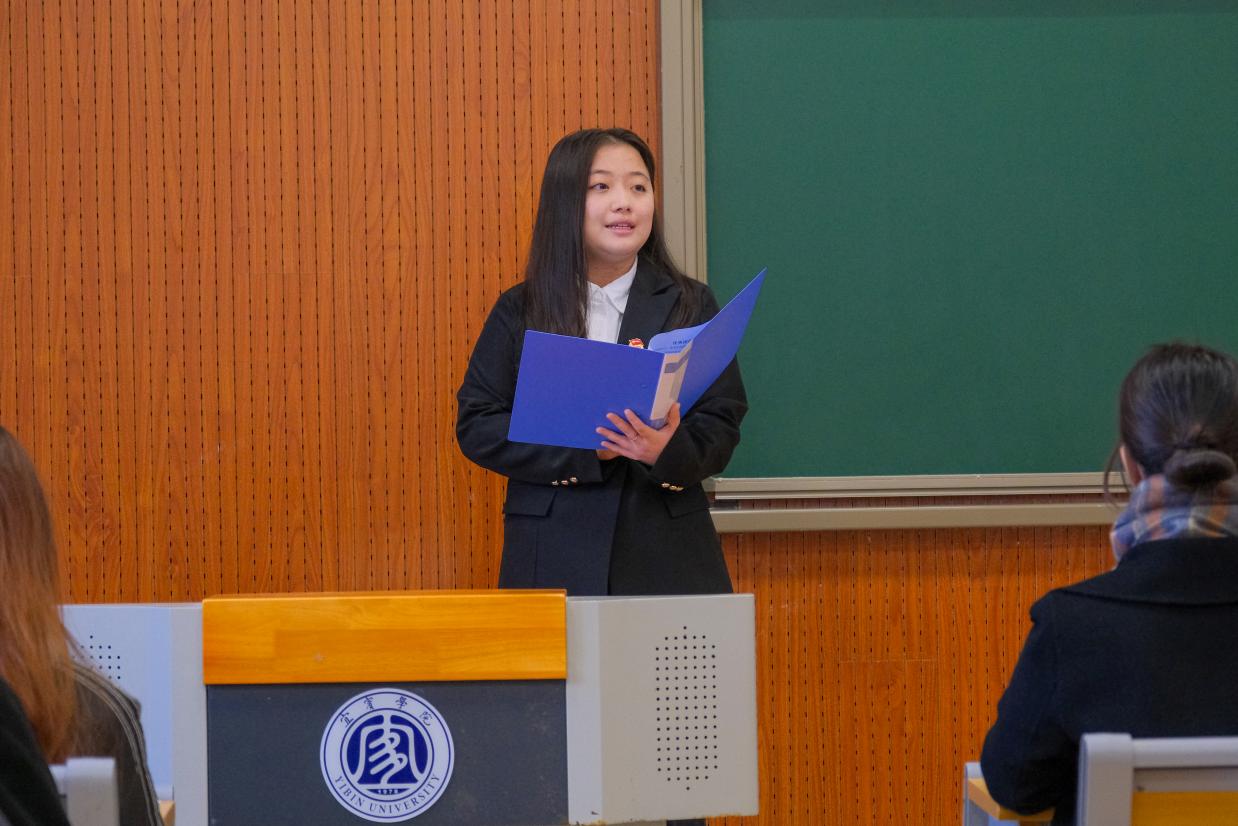 優秀團員代表鄧雨露分享了自己加入團組織以來的成長經歷與心得體會。黨員代表鐘鈴在發言中表示希望新團員們要嚴格遵守團的紀律與規定,樹立良好的團風團紀。