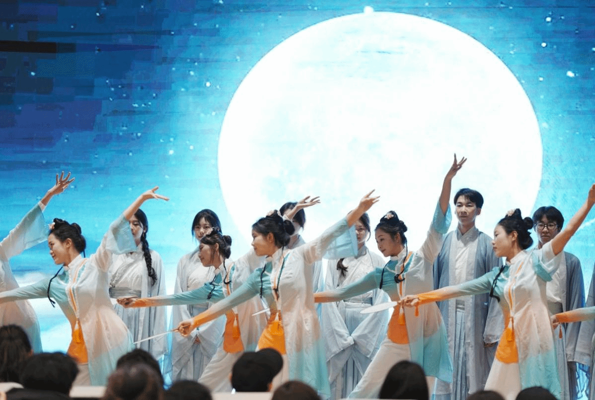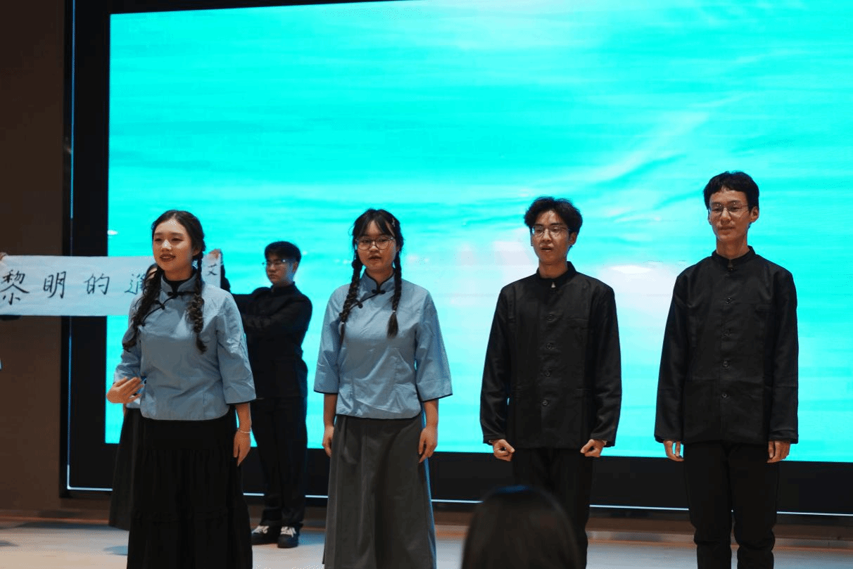 在舞臺上,“呦呦鹿鳴,食野之蘋”的詩句伴隨莊重的鼓聲,重現禮樂文化之肅穆;《春江花月夜》巧妙融合古箏悠揚、竹笛清脆之音,生動勾勒出江潮連海、月共潮生的絕美畫卷;《黎明的通知》,充滿激情與力量,將詩歌中對光明的渴望、對新生活的向往詮釋得深刻而動人,傳遞出一種鼓舞人心的正能量;中華經典詩文吟誦唱選修班帶來的《大同》,將理想社會圖景徐徐展開,生動地傳遞出對大同社會的向往與追求,把全場氣氛推向了高潮,為這場吟誦比賽畫上了一個圓滿而精彩的句號。
