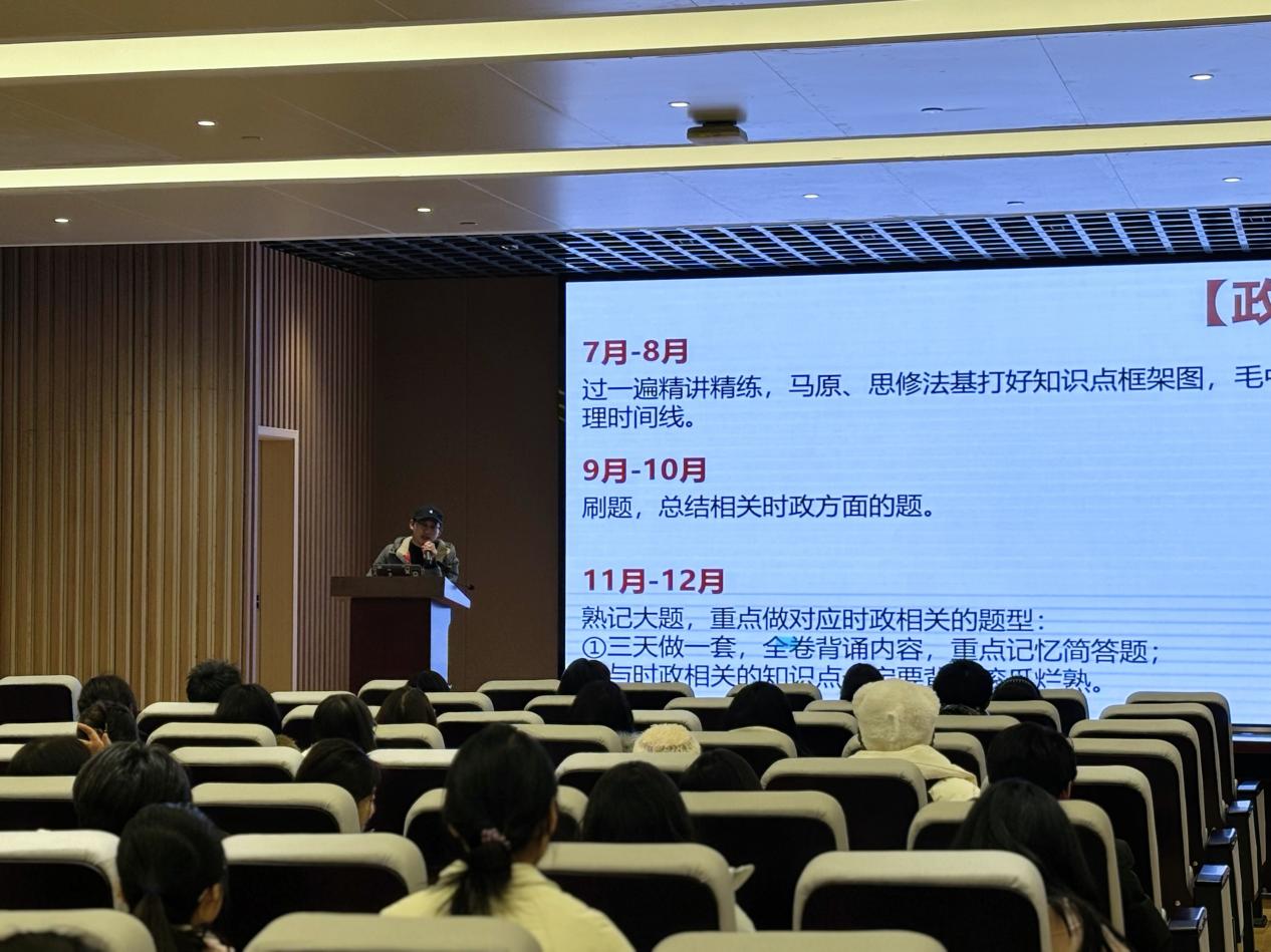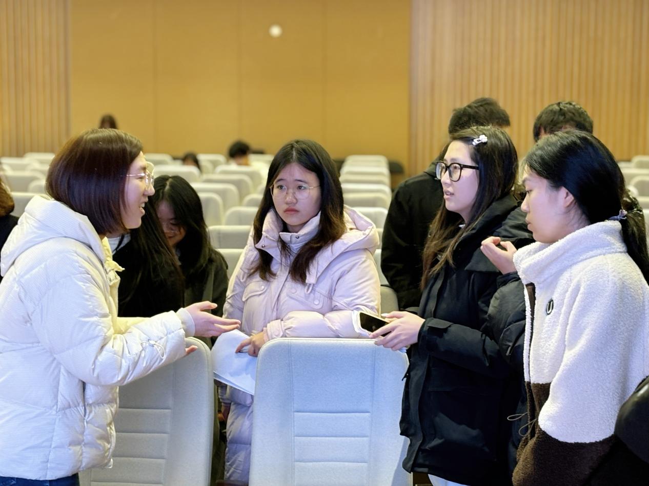 鐘磊老師從考研常識科普、科學規劃備戰、擇校選專業指導及歷年數據分析等幾個方面為學生提供實用信息,同時強調了個人興趣、職業規劃與學校專業實力在選擇學校和專業時的重要性。講座結束后,現場為學生們提供了一對一咨詢答疑服務,幫助學生解決個性化問題。