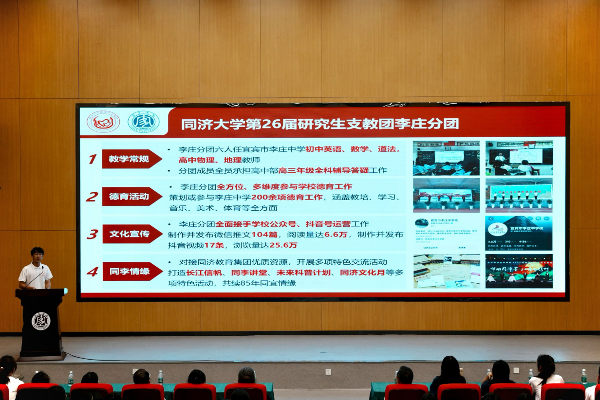 會上,同濟大學研支團成員結合自身經歷展開多維度分享。此次分享交流會以歷史為紐帶、以經驗為橋梁,不僅深化了同濟大學與宜賓學院的合作內涵,更為青年學子樹立了“知行合一、矢志報國”的榜樣力量。未來,兩校將繼續攜手,在人才培養、社會服務等領域深化合作,共同書寫“同舟共濟,同宜情深”的時代新篇。