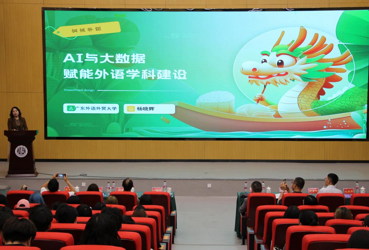 廣東外語外貿大學日語語言文化學院院長,教授,博士生導師楊曉輝教授以《AI與大數據如何賦能外語學科建設》為題作了主旨報告。她指出,在數字化轉型與新文科建設的雙重驅動下,人工智能(AI)與大數據技術正深刻重塑外語學科的發展路徑。報告探討了 AI 與大數據如何賦能外語學科的建設,并嘗試提出了轉型的實踐框架,為外語學科在人工智能的快速發展背景下創新日語學科的教育教學提供了新的思路,新的啟迪。