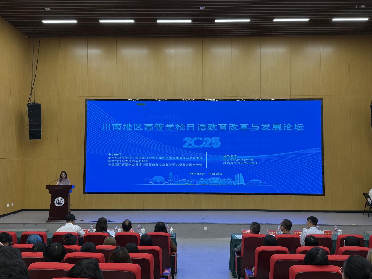 6月6日,2025年度川南地區高等學校日語教育改革與發展論壇在宜賓學院臨港校區舉行,本次論壇由教育部高等學校外國語言文學類專業教學指導委員會日語分委會、教育部日語專業虛擬教研室、中國國際貿易學會日語與國際商務專業教學研究委員會(原中國日語教學研究會)西南分會聯合主辦,宜賓學院外國語學院、外語教學與研究出版社聯合承辦。