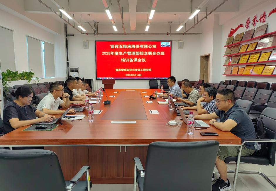 為做實宜賓五糧液股份有限公司2025年度生產(chǎn)系統(tǒng)一線釀酒后備人才培訓(xùn)班的籌備工作,7月14日上午,校企聯(lián)合集中備課會在宜賓學(xué)院臨港校區(qū)順利召開,宜賓五糧液股份有限公司生產(chǎn)管理部、宜賓學(xué)院校地合作處、農(nóng)林與食品工程學(xué)部負責(zé)人及全體授課專家等參會。
