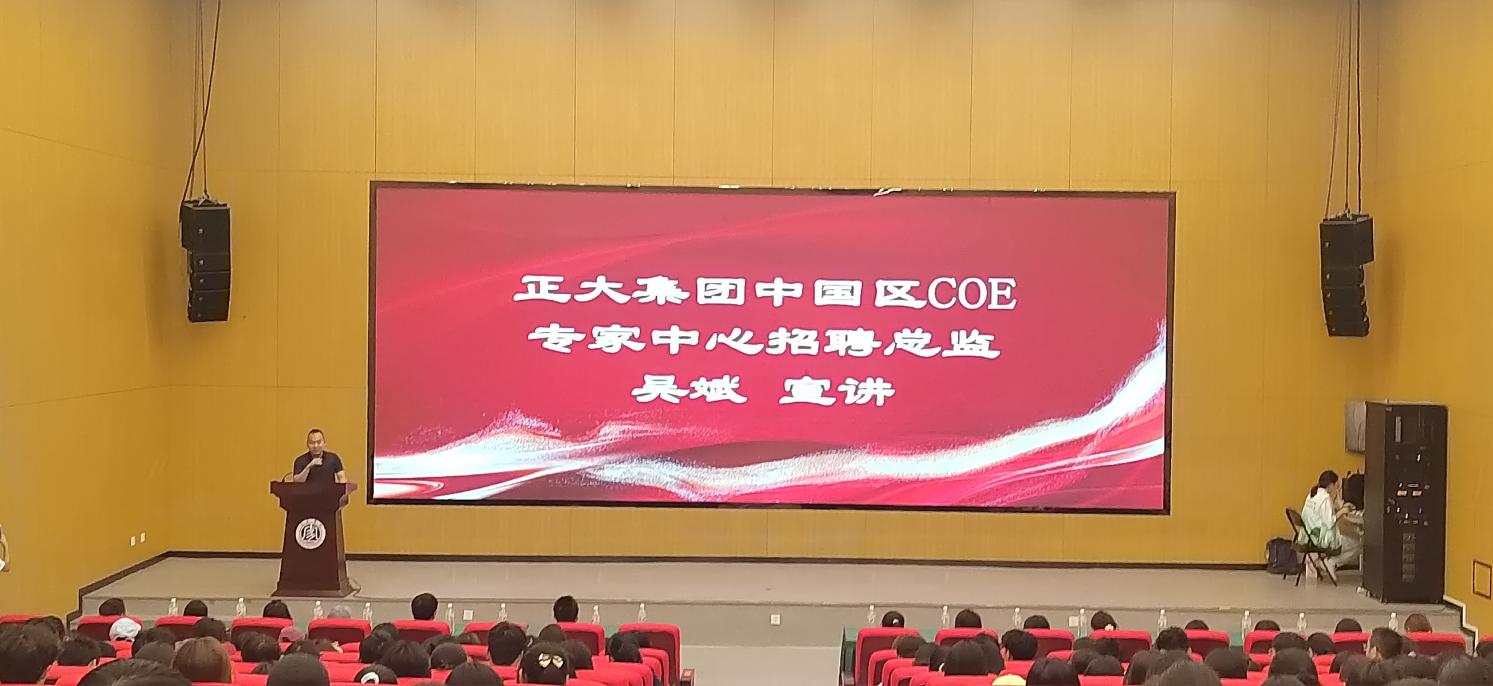 正大集團(tuán)中國區(qū)COE專家中心招聘總監(jiān)吳斌,農(nóng)林與食品工程學(xué)部、創(chuàng)新創(chuàng)業(yè)學(xué)院相關(guān)負(fù)責(zé)人,250余名學(xué)生代表參加會議。
