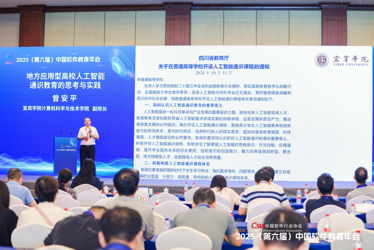 宜賓學院計算機科學與技術學院副院長曾安平作了題為《地方應用型高校人工智能通識教育的思考與實踐》的大會主題報告。