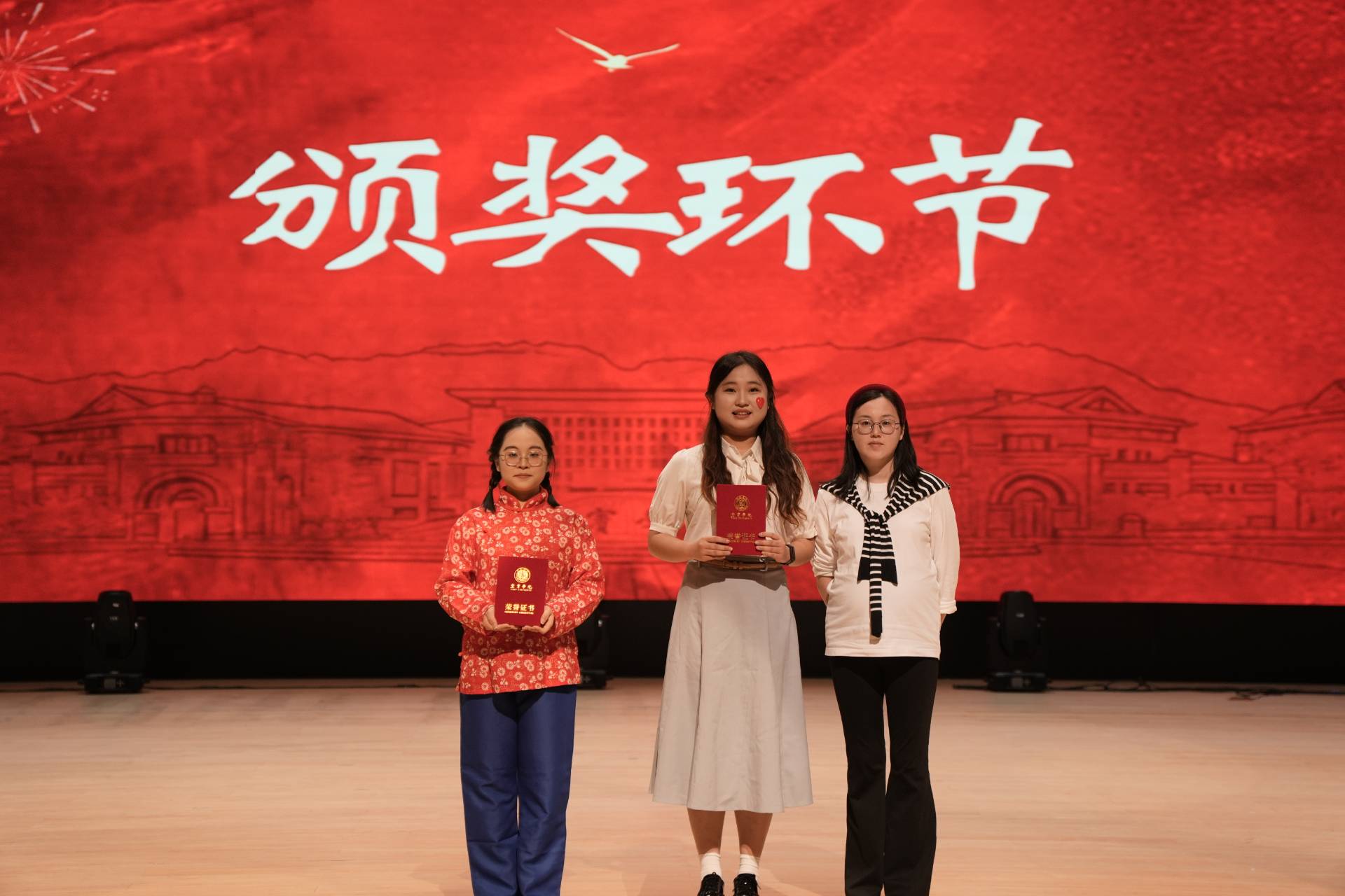 比賽期間穿插的抽獎環(huán)節(jié)進一步活躍了現(xiàn)場氣氛。經(jīng)過激烈角逐,文學與新聞傳媒學院選送作品《賡續(xù)紅色血脈,爭做薪火傳人》、農(nóng)林與食品工程學部選送作品《劉胡蘭》獲一等獎;農(nóng)林與食品工程學部選送作品《紅燭》、教師教育學院選送作品《銘史感恩,矢志篤行》、“青馬工程”二班選送作品《家書——以青春之我,續(xù)寫紅色使命》榮獲二等獎;文學與新聞傳媒學院選送作品《棟梁》、體育與大健康學院選送作品《你有一束光》、“青馬工程”一班選送作品《滿江紅·五四青年志》、電子信息工程學院選送作品《時代回響》榮獲三等獎。評委老師為獲獎隊伍頒發(fā)榮譽證書并合影留念,為此次比賽畫上了圓滿的句點。