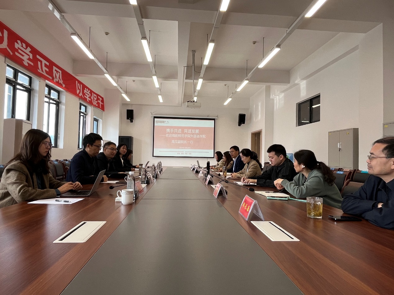 為深化校際協(xié)同,推動(dòng)外語(yǔ)學(xué)科建設(shè)與人才培養(yǎng)質(zhì)量提升,10月28日,綿陽(yáng)師范學(xué)院外國(guó)語(yǔ)學(xué)院副院長(zhǎng)高見(jiàn)率隊(duì)到訪(fǎng)宜賓學(xué)院外國(guó)語(yǔ)學(xué)院,雙方圍繞“攜手共進(jìn) 共話(huà)發(fā)展”主題,開(kāi)展了一場(chǎng)務(wù)實(shí)深入的交流座談。宜賓學(xué)院外國(guó)語(yǔ)學(xué)院相關(guān)負(fù)責(zé)人、各科室主任、各教研室主任及骨干教師參會(huì)。