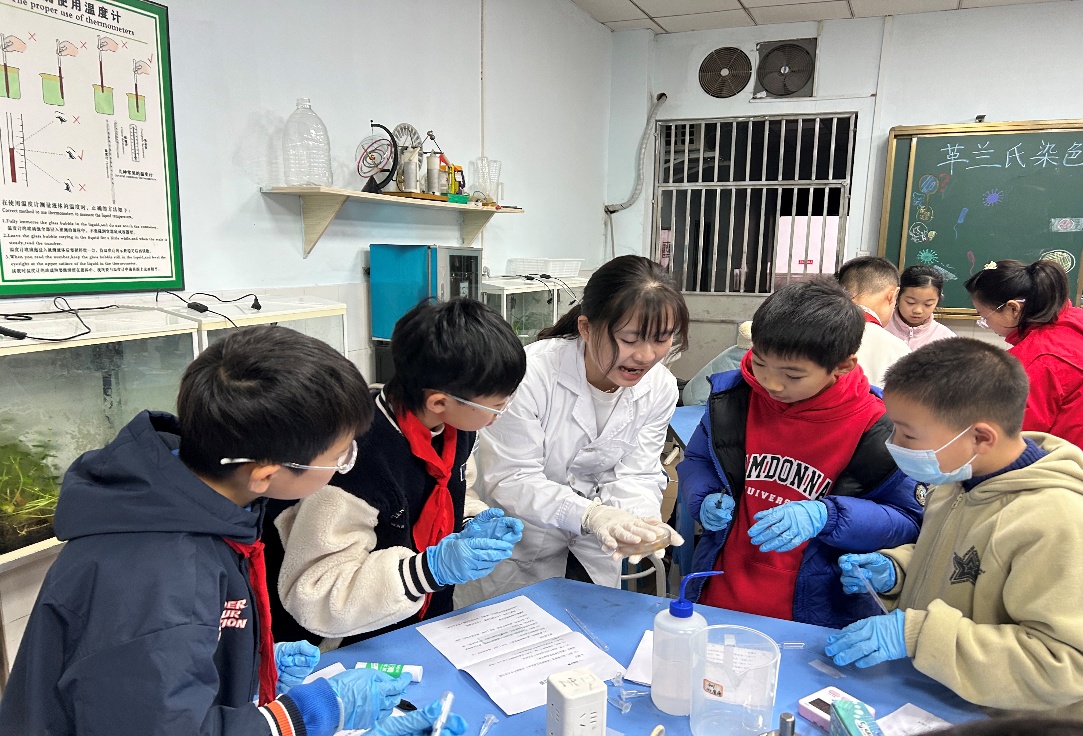 田志革博士向小學生們講解了宜賓市越冬水鳥的種類與識別方法、危害遷徙鳥類健康的致病微生物類群,科學觀鳥與個人防護方法等知識,并在現場演示了實驗室檢測病原微生物的實驗方法;在實踐互動環節,小朋友們通過親手制作涂片、顯微觀察微生物等方式,加深了對病原微生物的認識;本次科普活動寓教于樂,不僅讓同學們學到了豐富的鳥類保護知識,更在他們心中播下了熱愛自然、保護生態的種子,為構建人與自然和諧共生的美好環境奠定了堅實基礎?;顒又羞€向小學生發放鳥類保護科普宣傳手冊50余冊。