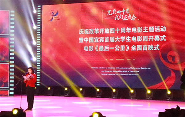 11月15日晚19:30,“光影四十年,我們正青春”慶祝改革開放四十周年主題活動暨中國宜賓首屆大學生電影周及《最后一公里》首映式于四川理工學院宜賓校區二期禮堂正式開幕。出席活動現場的有中影集團董事長焦宏奮,中共宜賓市委常委、宣傳部部長李敏以及我校黨委副書記魯飛。由我校選送具有濃郁地方特色的舞蹈《金沙江號子》參加開幕式演出。