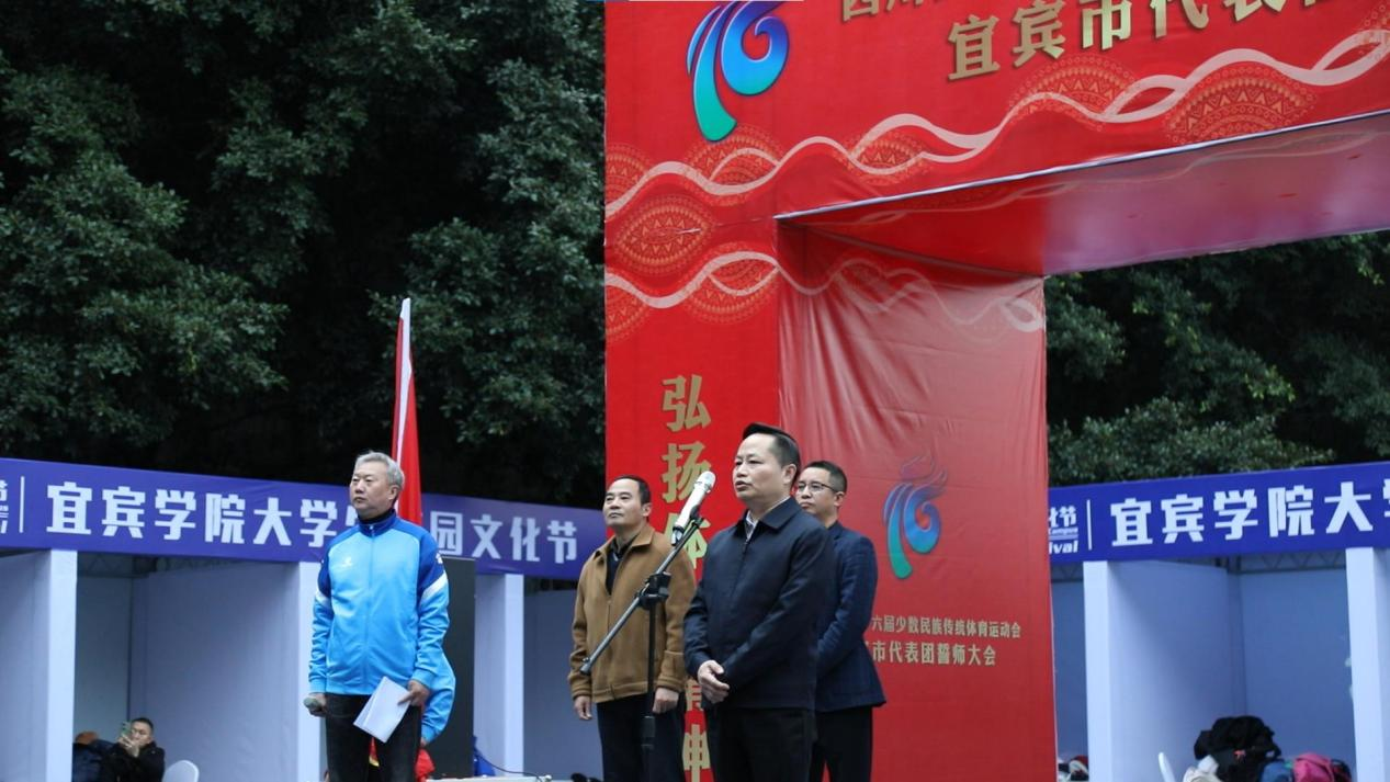 11月30日上午,四川省第十六屆少數民族傳統體育運動會宜賓市代表團出征誓師大會在宜賓學院A區青春廣場舉行。市委常委、統戰部部長陶學周出席大會并講話。宜賓學院黨委副書記魯飛,黨委常委、黨委統戰部長華曦,市委統戰部副部長、市民宗局局長楊學東出席大會。宜賓市代表團全體成員參加誓師大會。