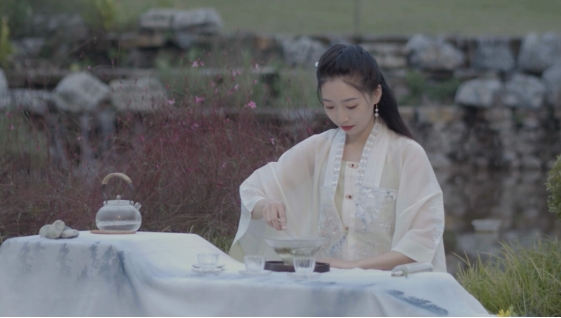肖琴同學的作品“習文武,振家邦”,改變傳統的長嘴壺茶藝表演,將原本代表“天地人”的蓋碗,比作“文、武、青年”賦予他們新的意義,體現茶藝青年,以茶為筆,書寫青春色彩;以道弘毅,扛起家國擔當。
