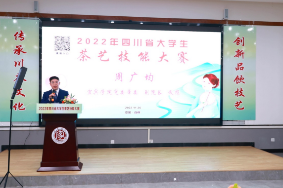 周廣均在開幕式上致辭。他代表全校師生對四川省大學生茶藝技能大賽開幕表示熱烈的祝賀,對來自全國各地的裁判專家、各位老師、同學對大賽的支持表示衷心的感謝。他介紹了學校的辦學情況,強調川茶學院作為四川省首批現代產業學院,四川茶業人才培養基地,要肩負起培養服務精制川茶產業人才的重要使命。學校圍繞四川“千億茶產業強省”和精制川茶產業培育目標,大力開展茶產業人才培養、科學研究、社會服務和文化傳承等工作。他表示,學校將持續大力建設茶學學科,努力把川茶學院打造成為“省內領先、國內一流”的產業學院和全國產學研用融合發展典范,為茶產業高質量發展提供強有力的人才和科技支撐。