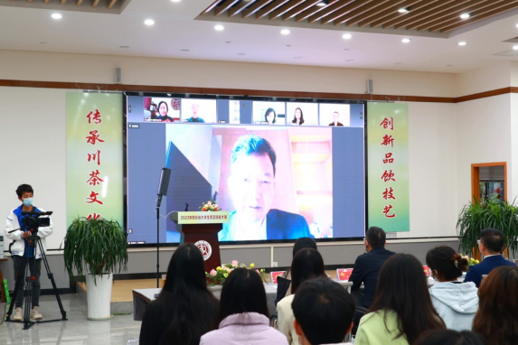 大賽裁判長王岳飛教授在致辭中代表全體評委向本次大學生茶藝技能大賽致以最熱烈的祝賀。他盛贊競賽內容中“說川茶”部分極具地方特色,對宣傳四川“蒙頂山茶”“米倉山茶”“峨眉山茶”“宜賓早茶”區域品牌具有推動作用。他肯定了大賽采用互聯網直播形式能擴大四川茶文化的影響力,對川茶出川起到助推作用,也是落實習近平總書記關于“茶文化、茶產業、茶科技”三茶統籌發展重要指示精神的體現。