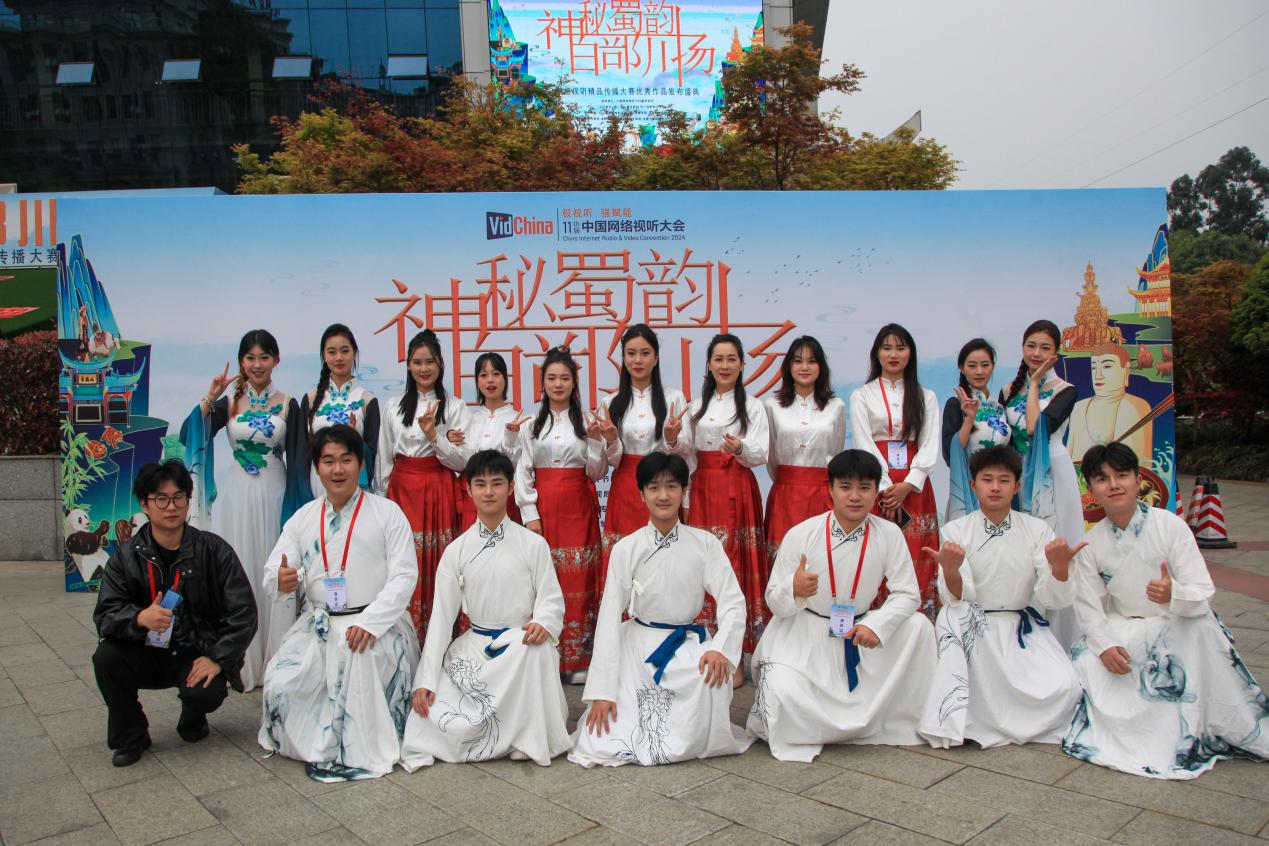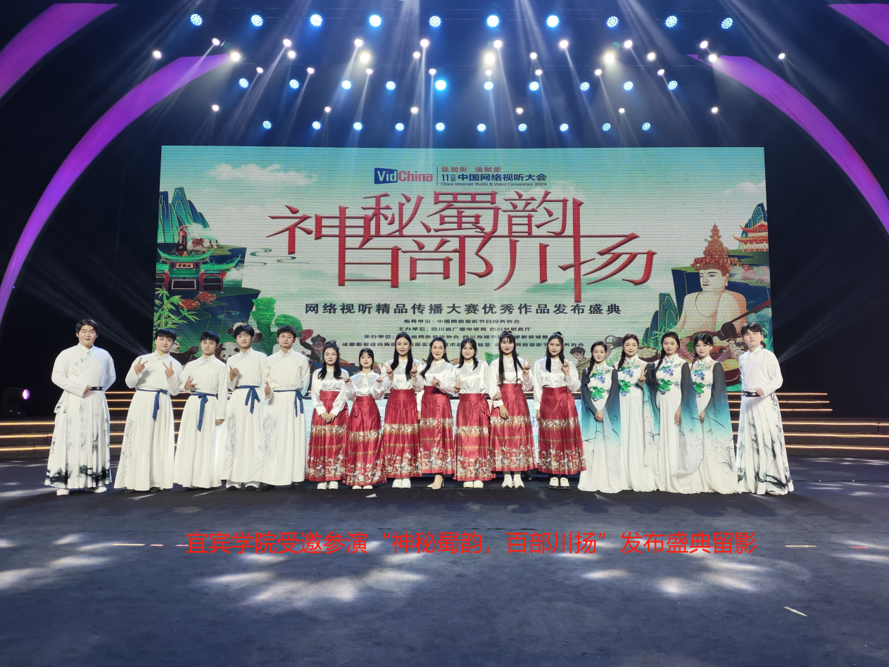 近日,第十一屆中國網絡視聽大會首場活動“神秘蜀韻 百部川揚”網絡視聽精品傳播大賽優秀作品頒獎盛典在四川傳媒學院藝體中心成功舉辦。本次活動由四川省廣播電視局、四川省財政廳主辦,四川省網絡視聽協會、四川傳媒學院等單位承辦,宜賓學院受邀參演,在校團委和文藝學部的大力支持下,鄧靜老師帶領16名學生圓滿演繹了蘇軾古譜詩樂舞作品《定風波·莫聽穿林打葉聲》。