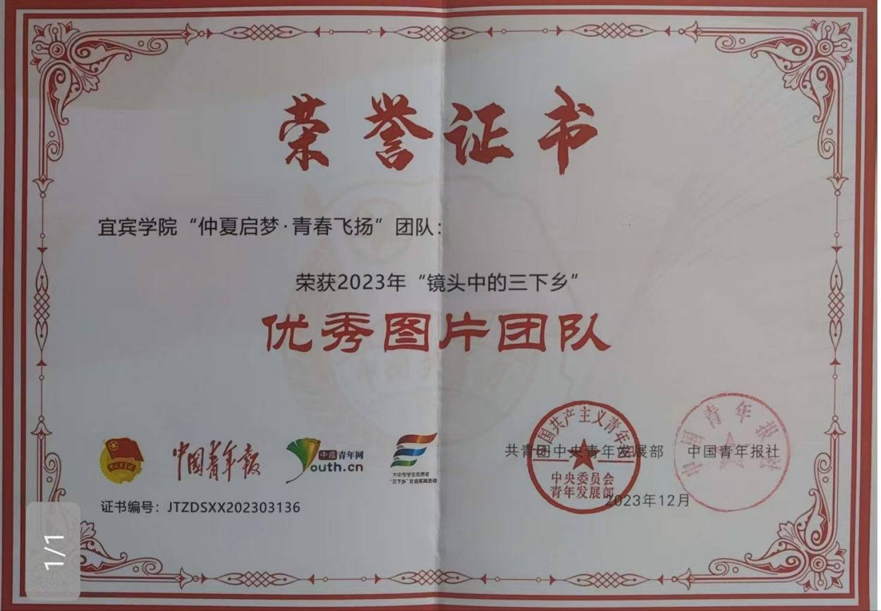 為充分展示2023年全國大中專學生志愿者暑期“三下鄉(xiāng)”社會實踐活動成果,共青團中央青年發(fā)展部、中國青年報、中國青年網(wǎng)共同舉辦2023年全國大中專學生志愿者暑期文化科技衛(wèi)生“三下鄉(xiāng)”社會實踐“鏡頭中的三下鄉(xiāng)”征集活動。經(jīng)報審核、作品發(fā)布、網(wǎng)絡(luò)展示、綜合評審等環(huán)節(jié),遴選出200個優(yōu)秀組織單位、154支優(yōu)秀文字報道團隊、155支優(yōu)秀圖片報道團隊、141支優(yōu)秀視頻報道團隊、111名優(yōu)秀指導教師、111名優(yōu)秀通訊員。其中,宜賓學院“仲夏啟夢 青春飛揚”三下鄉(xiāng)社會實踐團隊榮獲2023年“鏡頭中的三下鄉(xiāng)”優(yōu)秀圖片團隊。
