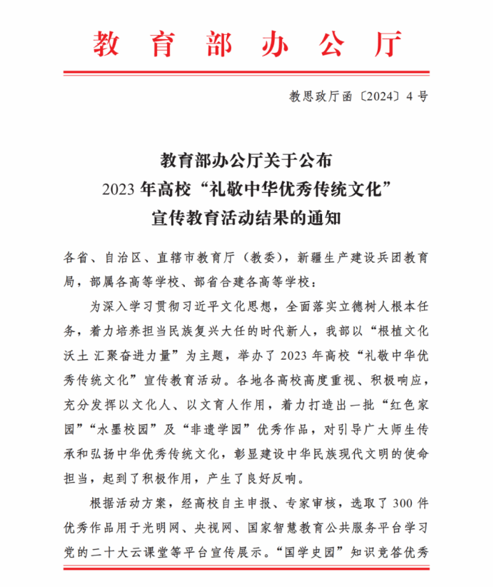 近日,教育部辦公廳公布2023年高校“禮敬中華優秀傳統文化”宣傳教育活動結果,宜賓學院學生創作作品《水墨宜院》成功入選2023年高校“禮敬中華優秀傳統文化”宣傳教育活動“水墨校園”繪畫聯播。