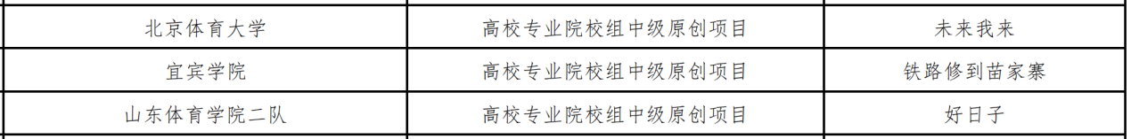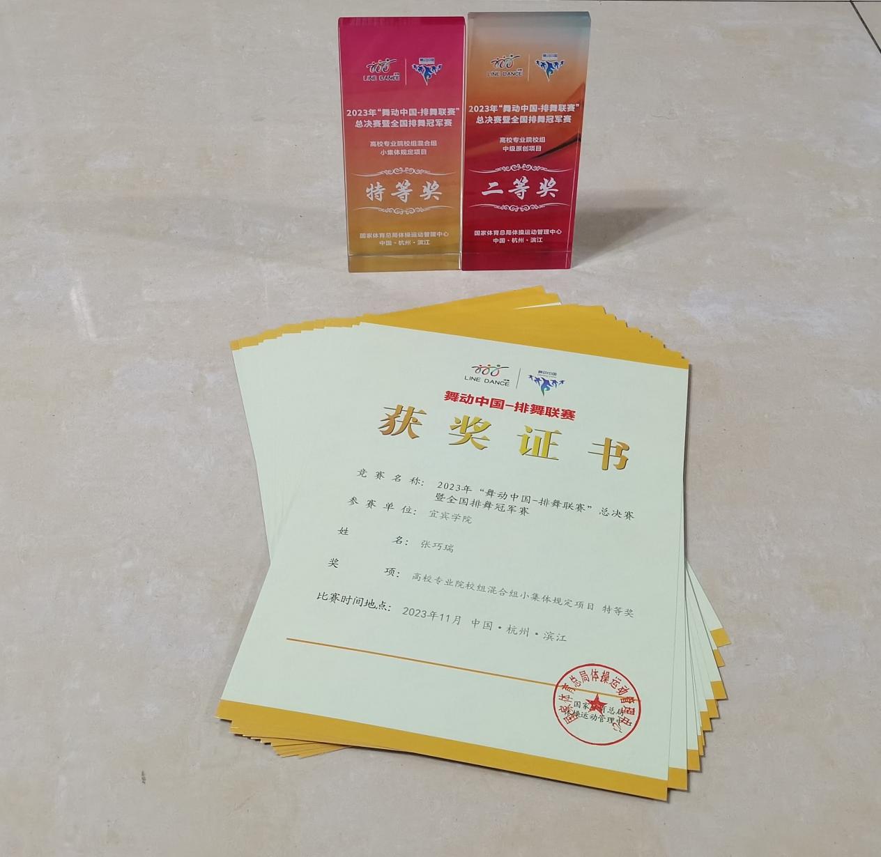 教練組在技術動作與音樂創編過程中巧妙融合了宜賓地方特色文化,原創具有苗族風格排舞曲目《鐵路修到苗家寨》獲本次比賽“原創排舞十佳作品”。經過激烈角逐,最終斬獲高校專業院校組混合組小集體規定項目特等獎、中級原創項目二等獎。