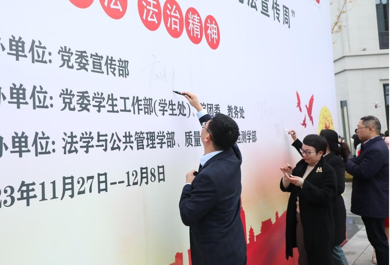 活動要求,全校師生要持續(xù)深入學習宣傳貫徹黨的二十大精神和習近平法治思想,大力弘揚憲法精神,建設社會主義法治文化,推動全面貫徹實施憲法,增強法制觀念和法律意識,增進依法治校、依法治理能力;要在校園中形成尊崇憲法、學習憲法、遵守憲法、維護憲法、運用憲法的良好風氣;為學校高質(zhì)量內(nèi)涵發(fā)展營造健康、安全、穩(wěn)定的環(huán)境氛圍貢獻力量,為學校建成特色鮮明的應用型綜合大學提供強有力的支撐。