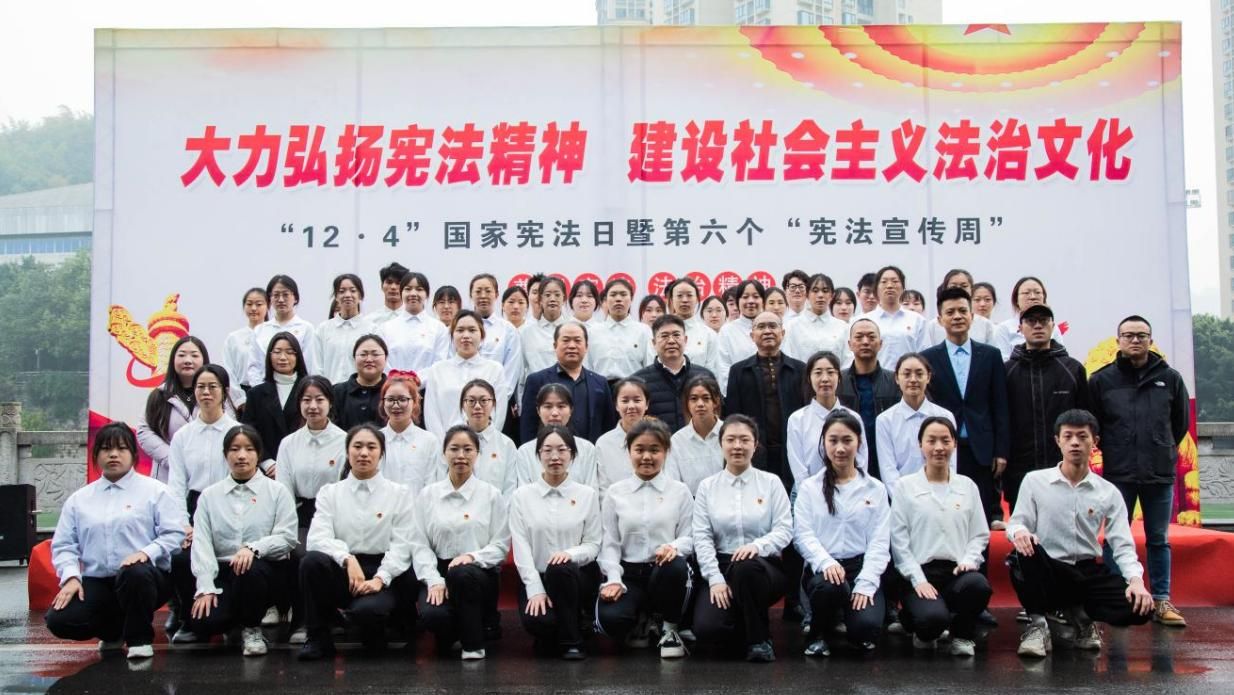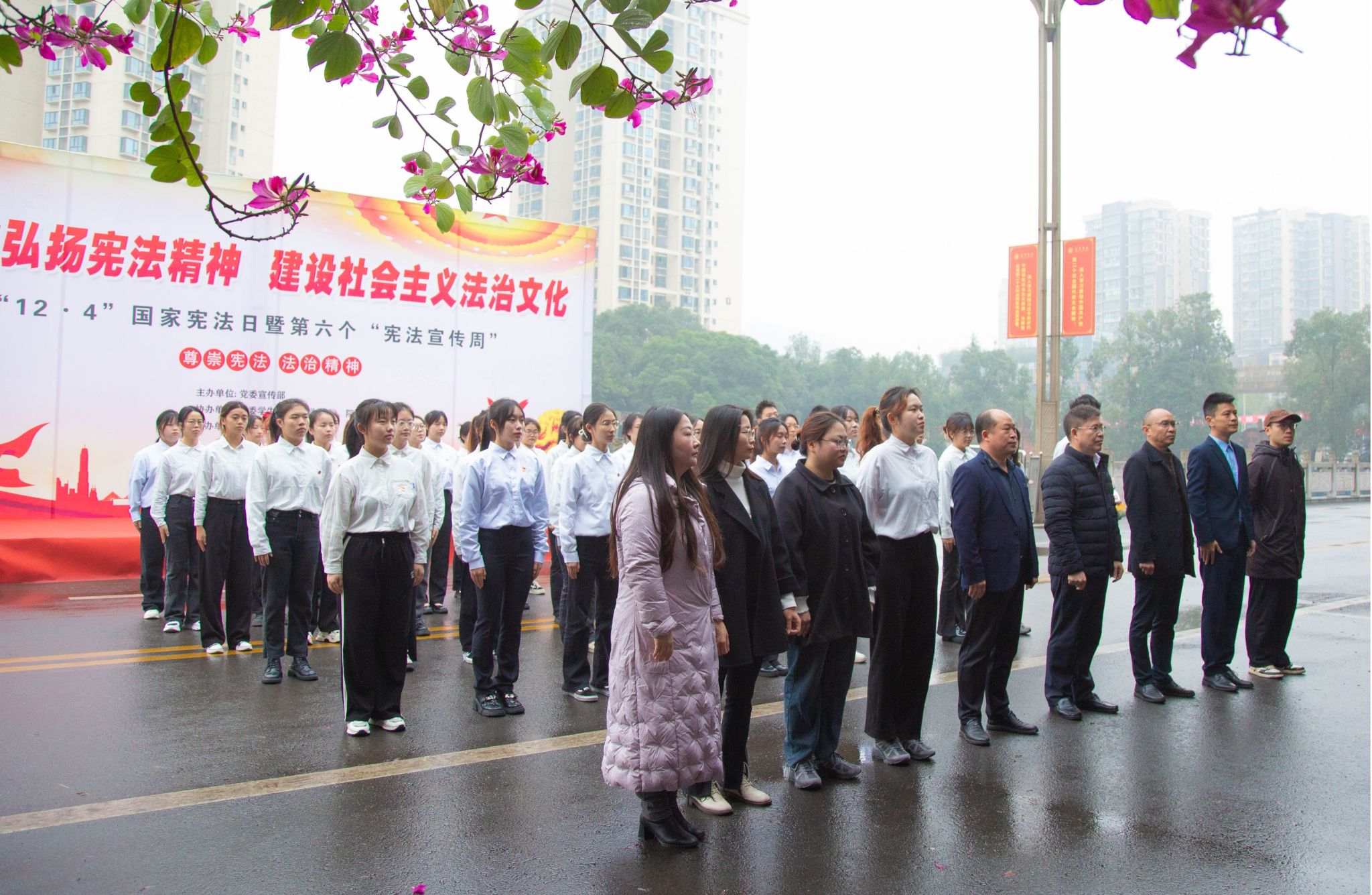 蔣道平、周廣均在致辭中指出,憲法作為我國的根本大法,具有最高的法律地位、法律權(quán)威和法律效力。黨的十八大以來,習近平總書記以馬克思主義政治家、思想家、戰(zhàn)略家的非凡理論勇氣、卓越政治智慧、強烈使命擔當,在領(lǐng)導全面依法治國、建設法治中國的偉大實踐中,創(chuàng)造性提出關(guān)于全面依法治國的一系列具有原創(chuàng)性、標志性的新理念新思想新戰(zhàn)略,形成了習近平法治思想,譜寫了習近平新時代中國特色社會主義思想的“法治篇章”,為全面依法治國工作提供了根本遵循。全校師生要堅持以習近平新時代中國特色社會主義思想為指導,深入學習貫徹習近平法治思想,全面貫徹落實黨的二十大精神,堅持以法治思維和法治方式統(tǒng)籌推進“依法治校示范學校”建設。