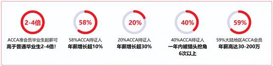 根據(jù)ACCA官方數(shù)據(jù),ACCA準(zhǔn)會(huì)員畢業(yè)生起薪可高于普通畢業(yè)生2-4倍,大部分正式會(huì)員年薪則可達(dá)到30-200萬(wàn)。據(jù)學(xué)校統(tǒng)計(jì),歷屆財(cái)務(wù)管理專業(yè)(ACCA方向)畢業(yè)生薪酬普遍較高,位于全校前列。