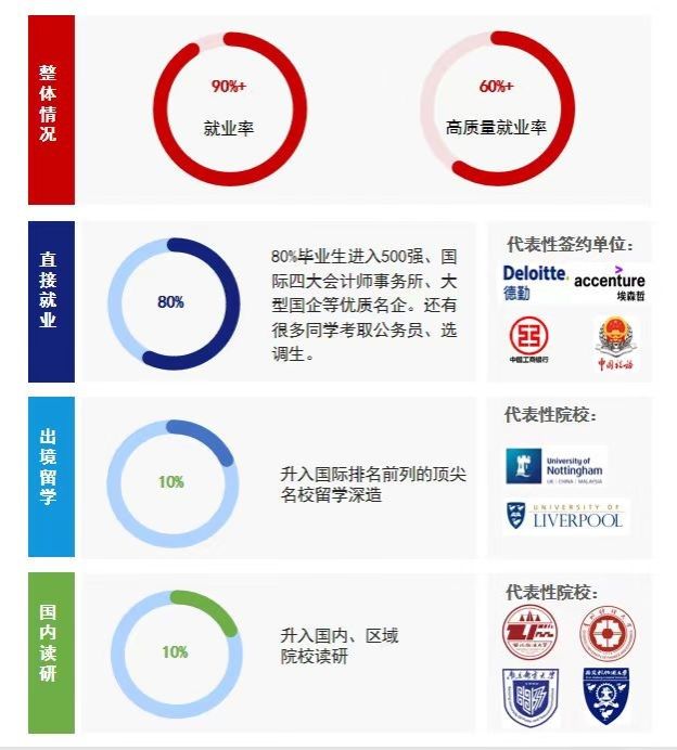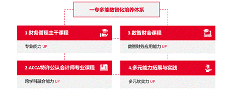 財(cái)務(wù)管理專業(yè)(ACCA方向)聚焦新興技術(shù)應(yīng)用下財(cái)會(huì)專業(yè)學(xué)生的核心素養(yǎng)與技能,以當(dāng)前全球大型企事業(yè)單位用人需求為導(dǎo)向,搭建起“財(cái)務(wù)管理主干課程+ACCA專業(yè)課程+數(shù)智財(cái)會(huì)課程+多元能力拓展與實(shí)踐”的一專多能數(shù)智化培養(yǎng)體系,教學(xué)由淺入深、循序漸進(jìn),課程內(nèi)容先進(jìn)、覆蓋面廣、綜合性強(qiáng),聚焦會(huì)計(jì)、金融、財(cái)務(wù)管理、智能財(cái)務(wù)應(yīng)用等學(xué)科交叉領(lǐng)域,旨在培養(yǎng)熟練掌握國(guó)內(nèi)外會(huì)計(jì)、審計(jì)準(zhǔn)則及相關(guān)法規(guī),精通財(cái)經(jīng)英語(yǔ)與智能財(cái)務(wù)應(yīng)用,熟悉商業(yè)運(yùn)行整體邏輯,具備跨學(xué)科整合能力、全球化視野與前瞻思維,綜合素質(zhì)拔尖的未來(lái)型數(shù)智財(cái)會(huì)人才。