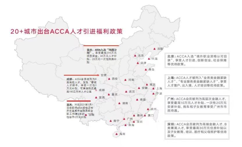 ACCA執(zhí)業(yè)資格在國(guó)內(nèi)被廣泛認(rèn)可,包括北京、上海、廣州、深圳、成都、西安、重慶、天津、廈門等全國(guó)眾多一二線城市均將ACCA持證人員列入當(dāng)?shù)馗叨司o缺金融人才目錄,爭(zhēng)相出臺(tái)諸如積分落戶、個(gè)稅減免、專項(xiàng)獎(jiǎng)金、置業(yè)補(bǔ)貼、子女入學(xué)等各項(xiàng)ACCA人才引進(jìn)福利政策。