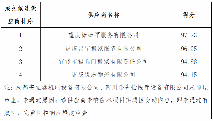 融匯項目管理有限公司受宜賓學院的委托,對新材料產研院設備及臺柜等物資搬遷服務項目(項目編號:RHYB20240306)組織采購,評審工作已經結束,現將成交結果公告如下: