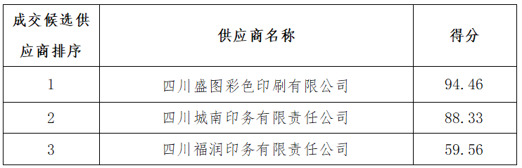 成交供應商名稱:四川盛圖彩色印刷有限公司。