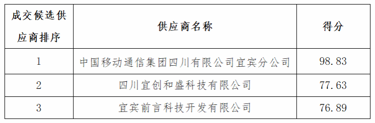 成交供應商名稱:中國移動通信集團四川有限公司宜賓分公司。