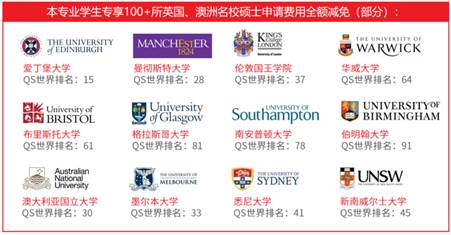 本專業學生還能專享包括曼徹斯特大學、愛丁堡大學在內的英國名校和悉尼大學、墨爾本大學在內的澳洲名校等100+所大學個性化留學方案免費制定,并提供全球名校定制申請服務支持,輕松實現名校留學夢想。