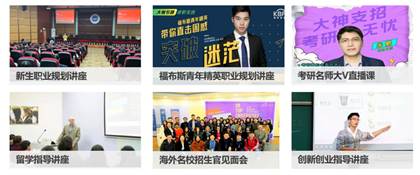 邀請職業規劃導師、名校招生官,開展職業生涯規劃指導、考研/留學指導、就業/創業指導,幫助建立清晰的未來規劃。
