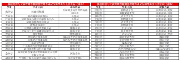 畢業生就業率高,就業質量好。入職名企的同學,大部分入職四大會計師事務所、大型國企、500強等優質名企,出國留學的同學,大部分進入世界排名靠前名校留學深造,國內升學的同學,考取了國內知名高校。