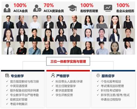 ACCA授課師資均為名企從業經驗豐富的ACCA持證人,部分還是全球統考命題人和評卷人;教學采用英文原版教材和練習冊,中英雙語授課,并額外配備專職班主任與助教老師,學習全過程輔導,及時掃除知識盲點;免費配備與眾多雙一流高校同步使用的ACCA網絡課程,幫助同學們高效學習與備考。