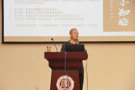 本次入學教育共分為三個主題。第一個主題是“珍惜大學時光,成就人生夢想”。楊金云圍繞什么是大學,為什么上大學和大學學什么三個問題展開講解。他指出,對于大學生而言,學習要有自主性、廣泛性和創造性,作為大學生要有包容之心,無論是對人還是對事。他提出,一要培養高度的責任心,無論是對自己,家人還是社會。二要有持續的進取心,這需要同學們具有堅定的目標、理想和信念。三要有強烈的好奇心,特別是對未知知識領域的探索。四要提升表達能力、動手能力、創新能力、協調能力。他指出,參與就是學習,參與就能提高,參與就會有所收獲,告誡同學們要積極主動學習參與各種活動提升自己。