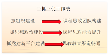 推進“三抓三促”黨支部工作法,旨在解決外語人才培養中思想政治教育薄弱的問題。該工作法通過抓黨支部組織建設,促進課程思政團隊構建;通過抓思想政治建設,促進教師課程思政能力提升;通過抓黨建平臺建設,促進思政教育渠道暢通。